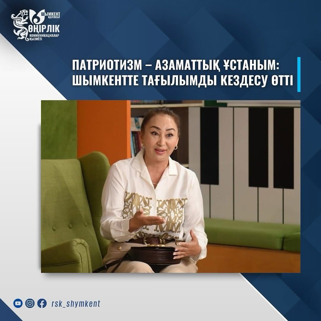 Шымкент қаласы Ішкі саясат және жастар істері жөніндегі басқармасының «Жастар ресурстық орталығы» КММ-нің ұйымдастыруымен елжандылыққа үндейтін тағылымды кездесу өтті. Кездесу ҚР Конституциясының 30 жылдығына орай «Мерейлі 30 күн» жобасы аясында ұйымдастырылды. «Қазақстандық патриотизм – әрбір азаматтың міндеті» тақырыбын арқау еткен шарада жас буынның бойына Отанға деген сүйіспеншілікті ұялату, азаматтық жауапкершілікті арттыру және қоғам өміріне белсенді қатысуға ынталандыру көзделді. Жиынның арнайы қонағы – қоғам белсендісі, Шымкент қаласы «AMANAT» партиясы жанындағы «Жер-Аманат» кеңесінің төрайымы, Сыбайлас жемқорлыққа қарсы іс-қимыл жөніндегі кеңес мүшесі, «Экономикалық даму және кәсіпкерлікті қолдау» кеңесінің төраға орынбасары, Іскер әйелдер қауымдастығы мен Әйелдер кеңесінің мүшесі Гүлайым Аскерқызы Шунгараева жастарға тағылымды әңгіме өрбітті.