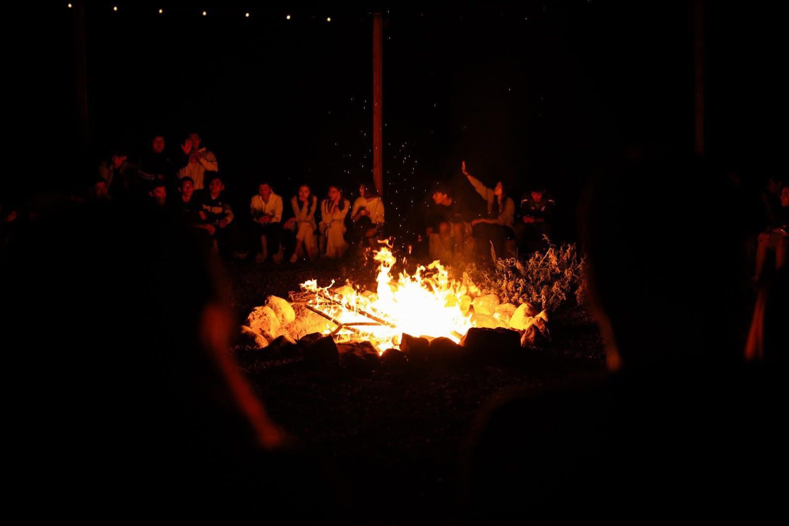 Лагерь аясында жастар от жағып, еркін ортада түрлі өлеңдер оқыды. Әсерлі лагерь кеші әрмен қарай ашық аспан астындағы кинокөрсетіліммен жалғасын тапты.