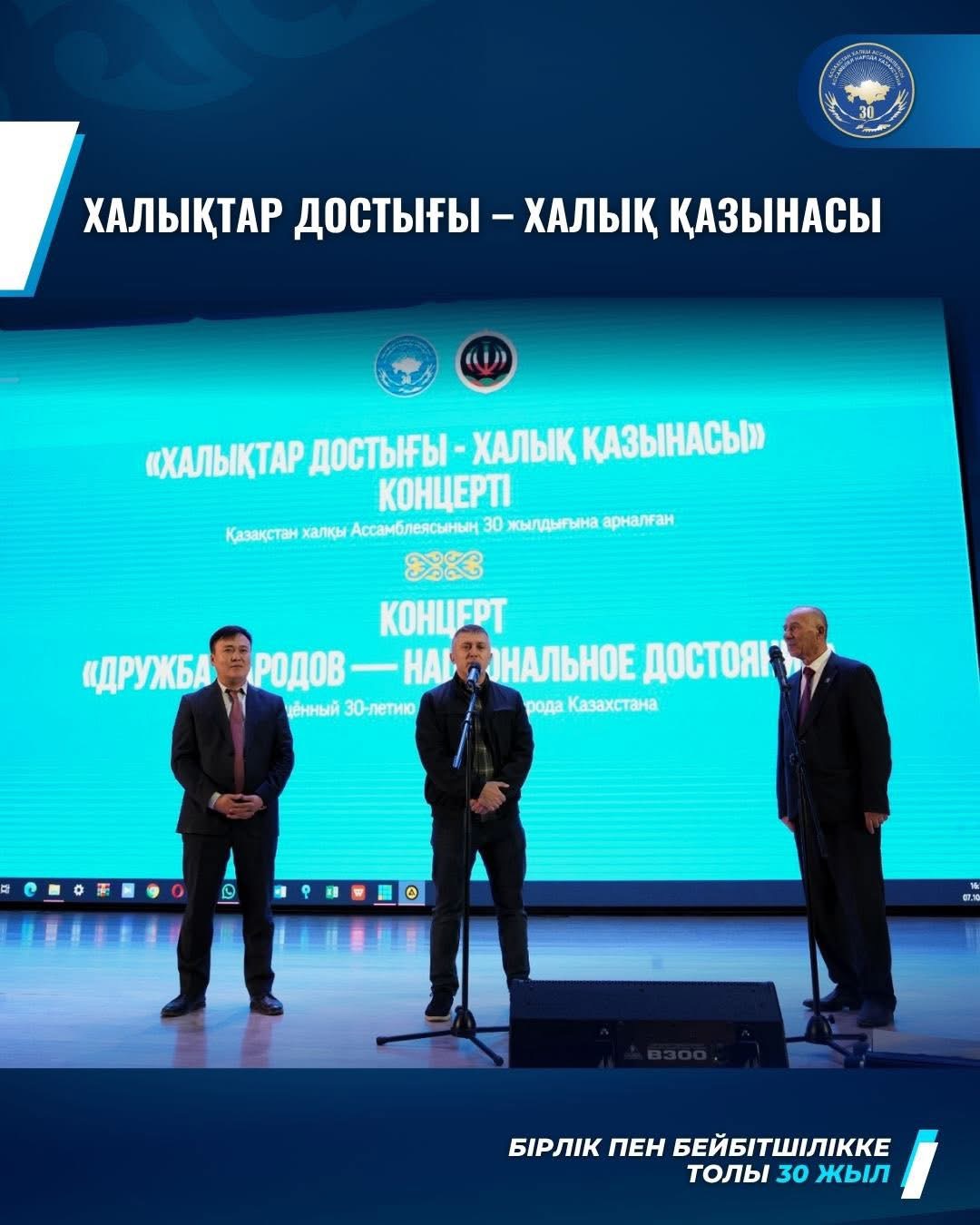 Осы игі дәстүрдің жалғасы ретінде Шымкент қаласының Достық үйінде Қазақстан халқы Ассамблеясының 30 жылдығы аясында «Халықтар достығы – халық қазынасы» тақырыбында мерекелік концерт өтті. Қалалық иран этномәдени бірлестігі ұйытқы болған іс-шараның мақсаты – этномәдени бірлестік өкілдерінің ұлттық мәдениеті мен өнерін жұртшылыққа көрсету арқылы ел бірлігін бекемдеу және этностар арасындағы достықты дәріптеу негізінде қоғамдық келісімді сақтау.
