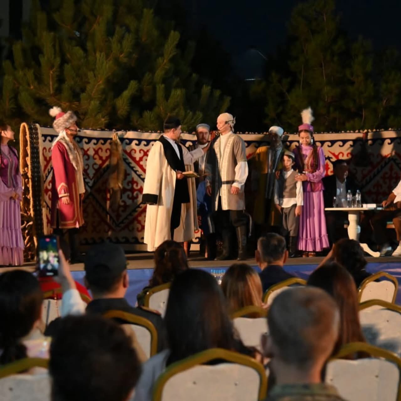 Затем артисты Академического казахского драматического театра им. Ж.Шанина поставили театрализованное музыкальное представление «Абай ауылы». Молодежь, увлеченная творчеством Абая, воспевала стихи и слова назидания поэта. Каждое их выступление и каждая мысль сопровождались ночным спокойствием и приближали слушателей к философии Абая. Также были представлены тематическая книжная выставка и литературные инсталляции. В этот вечер выступили победители республиканского конкурса «Абай әлемі» и фестиваля «Жеті қазына», а также молодежь литературного клуба «Алтын орта».